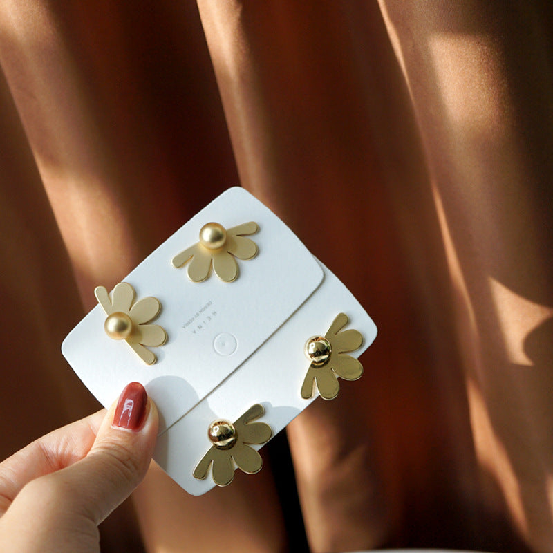 Color: 925 Silver Needle Plated Real Gold Flower Stud Earrings-Bright